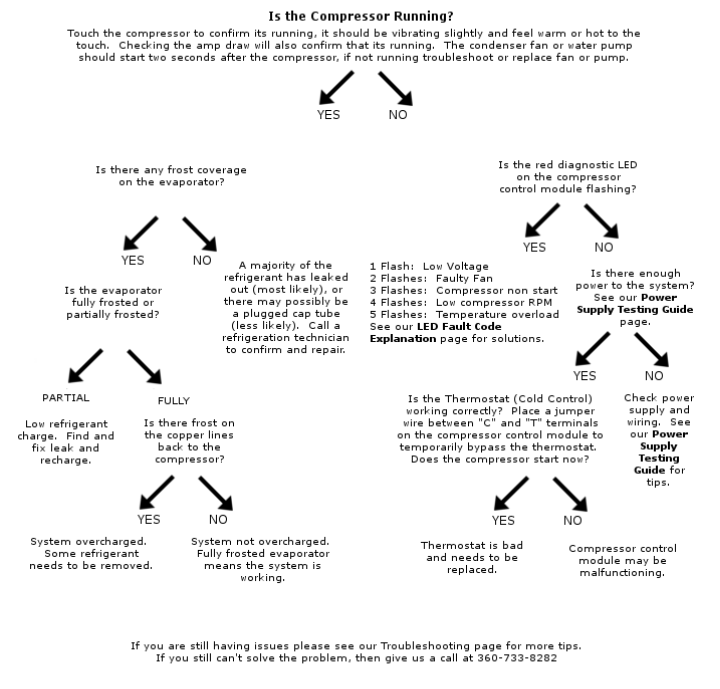 If you are having problems with your Sea Freeze product, please use this page to help diagnose and fix the problem. Start with the flow chart below, if that doesn't solve your problem, then explore the information below the chart.